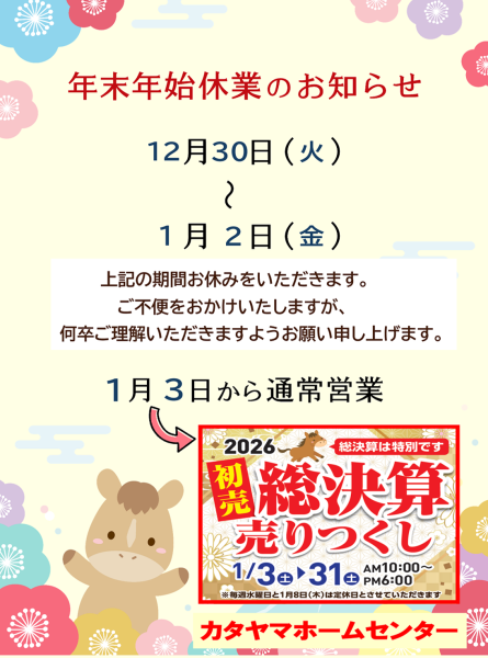 いつもカタヤマホームセンターをご利用いただきありがとうございます。