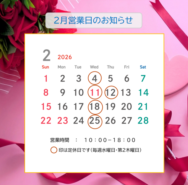 > 【2月の営業日】お知らせ